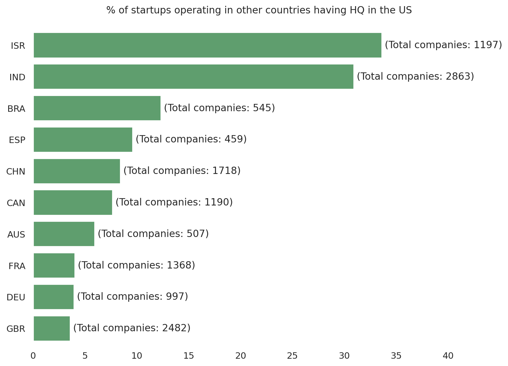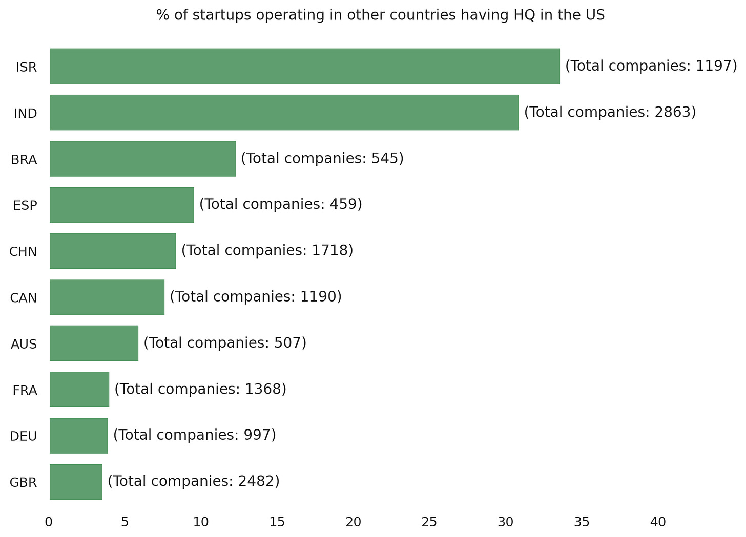 I analyzed more than 38,000 companies that have raised more than $5M across the world over the last 2 decades. More than 30% of venture-backed startups operating out of Israel and India have set up their headquarters in the US.